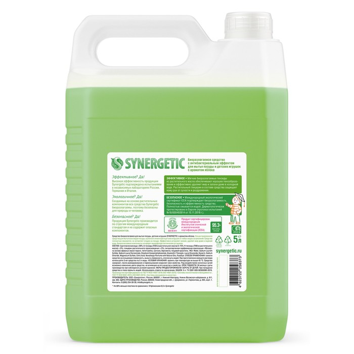 Средство для мытья посуды Synergetic "Яблоко", с антибактериальным эффектом, 5 л