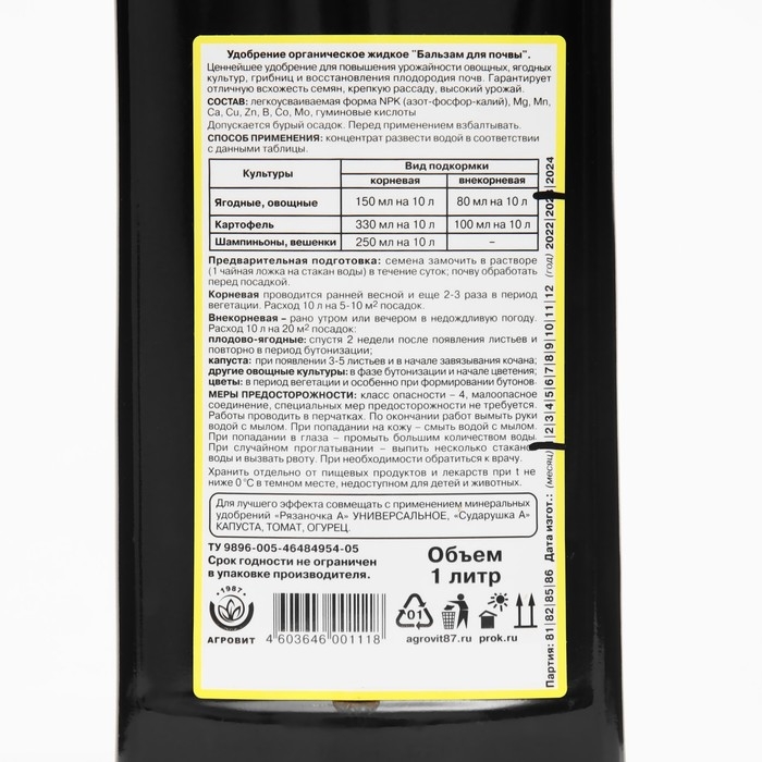 Экстракт конского навоза для овощных и ягодных культур "Бальзам для почвы", 1 л