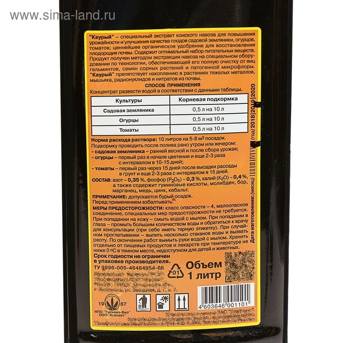Экстракт конского навоза для садово-огородных культур "Каурый", 1 л