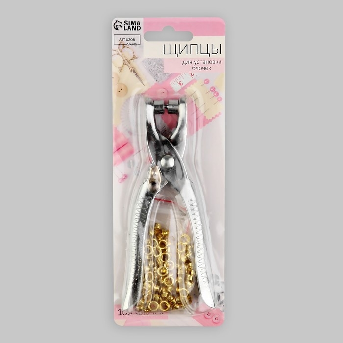 Щипцы для установки блочек, с блочками, 13,5 × 9 см, цвет серебряный