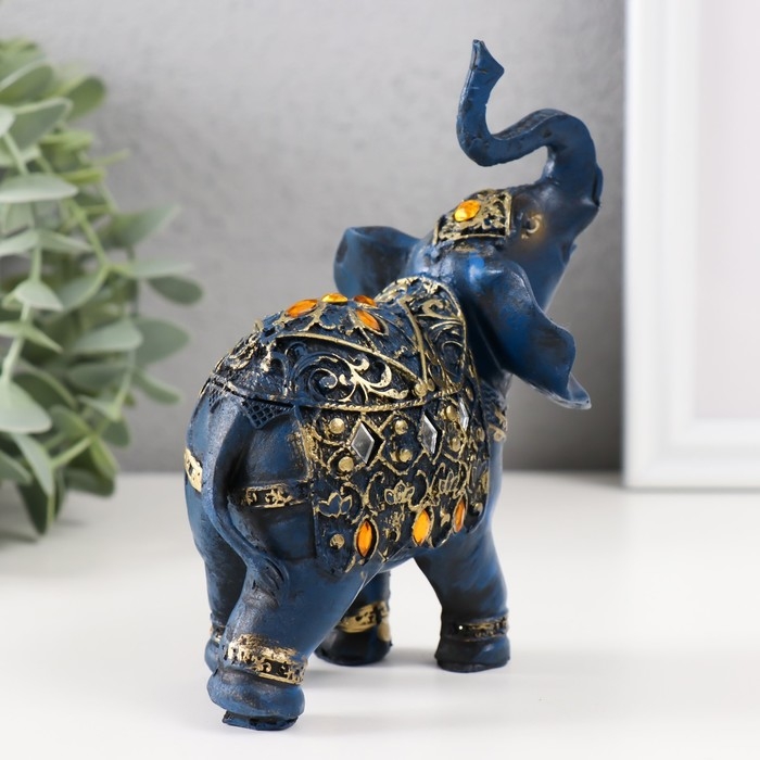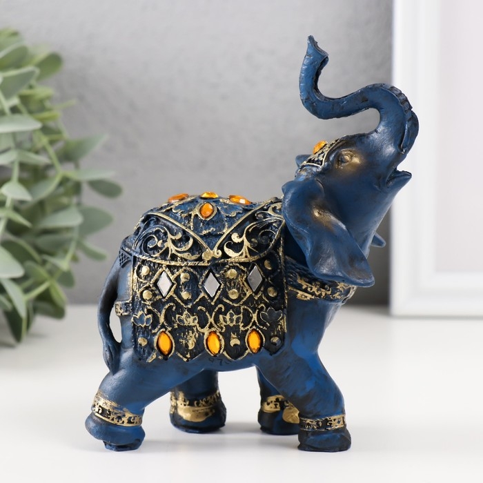 Сувенир полистоун "Синий слон в попоне с золотым узором и зеркалами" 14х7х11 см