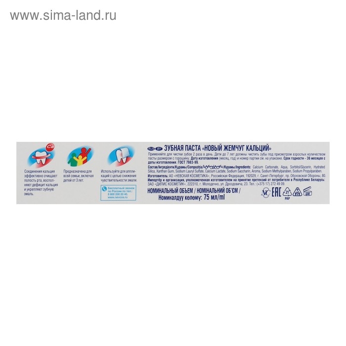 Зубная паста «Новый жемчуг», кальций, 75 мл