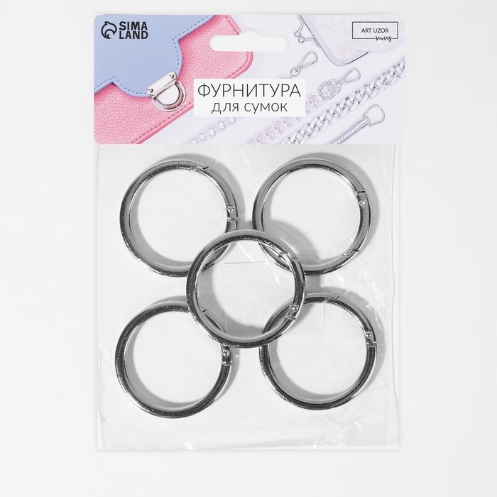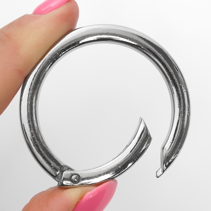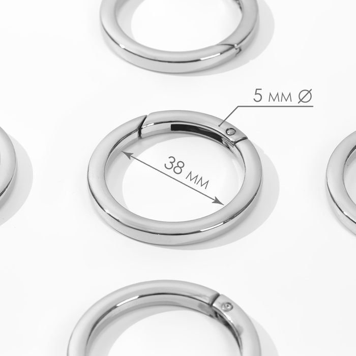 Кольцо-карабин плоский, d = 38/48 мм, толщина - 5 мм, 5 шт, цвет серебряный