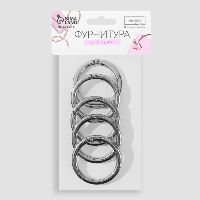 Кольцо-карабин плоский, d = 20/28 мм, толщина - 4 мм, 5 шт, цвет чёрный никель