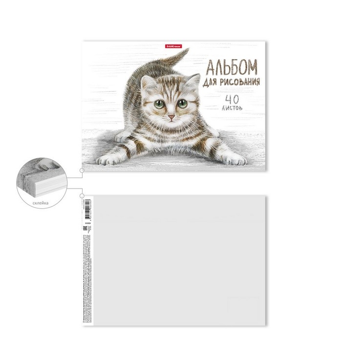 Альбом для рисования А4, 40 листов, блок 120 г/м², на клею, Erich Krause "Tabby", 100% белизна, твердая подложка