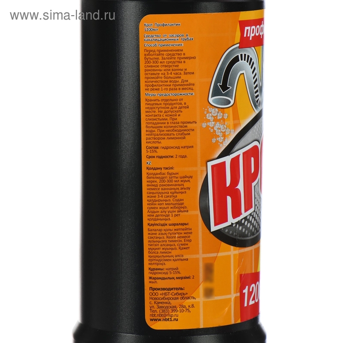 Средство от засоров в канализационных трубах "Крот", 1200 мл