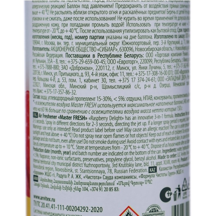 Освежитель воздуха Master FRESH, Малиновое наслаждение 300мл