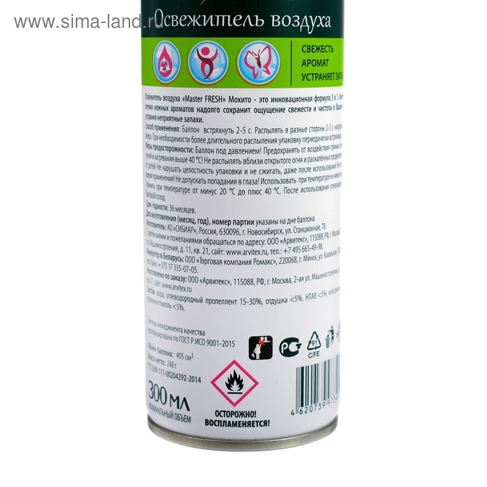 Мастер Фреш FA-431освежитель воздуха Мохито 300 мл (С)(24 в кор)