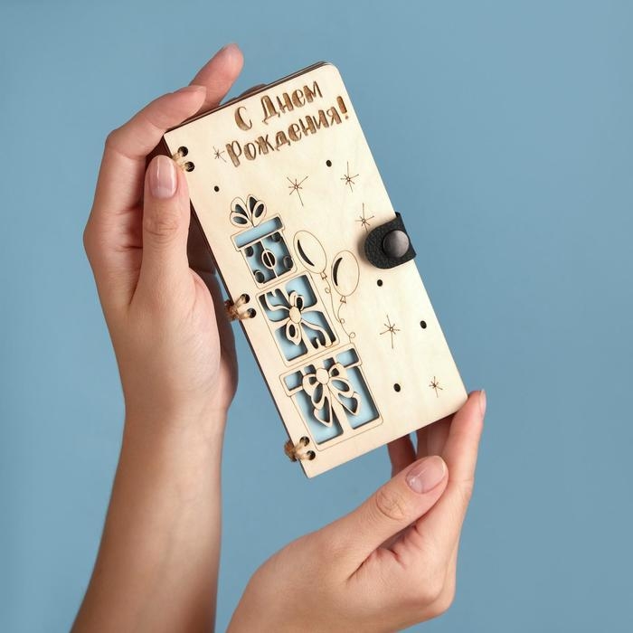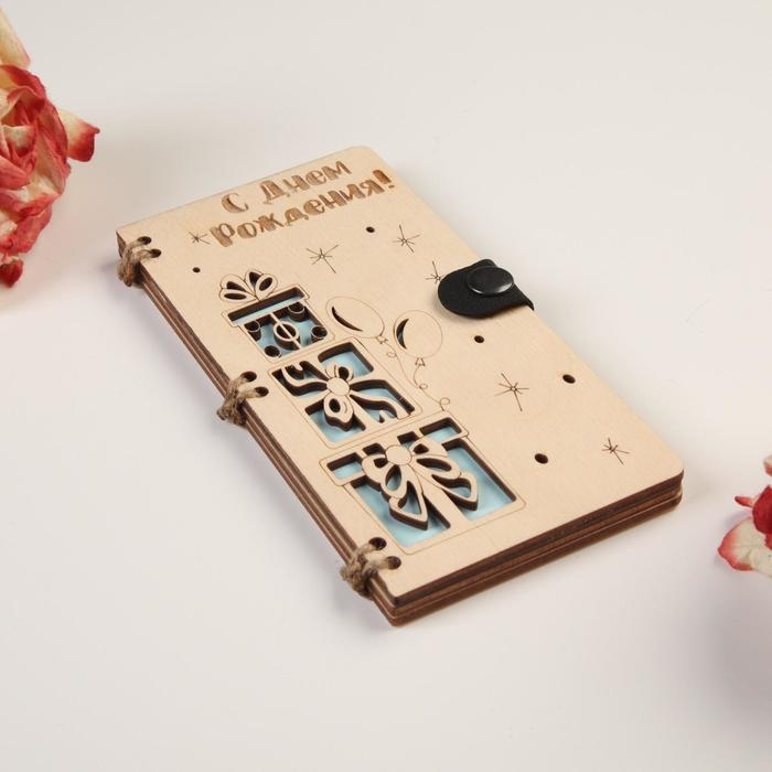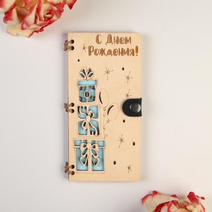 Конверт деревянный "С Днём Рождения!" ручная работа, светлый, 16,5х8х0,9см