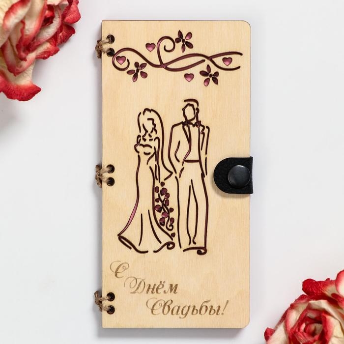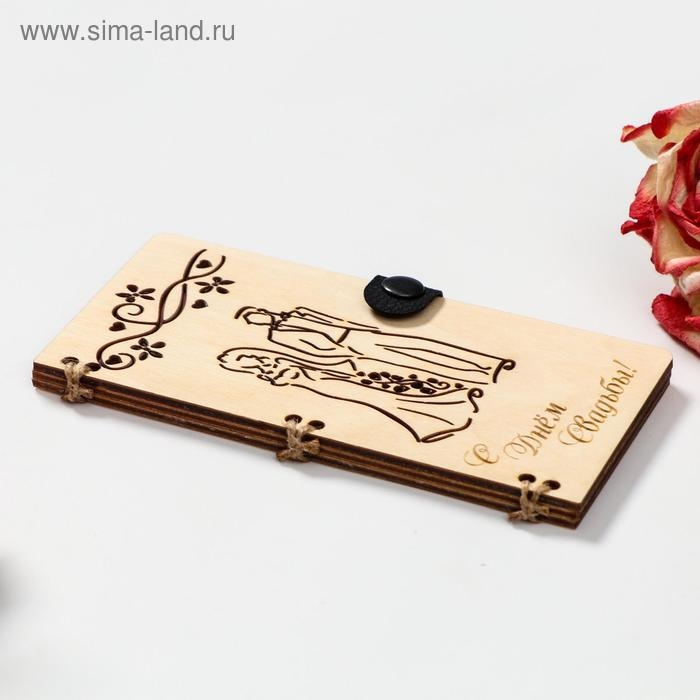 Конверт деревянный "С Днём Свадьбы!" ручная работа, светлый, пара, 16,5х8х0,9см