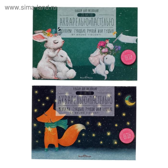 Альбом для рисования акварелью и пастелью А5, 20 листов на клею, обложка мелованный картон, ВД-лак, блок 200 г/м2, МИКС