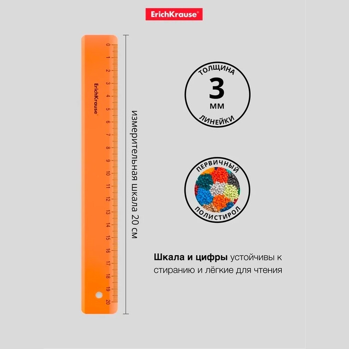 Линейка с держателем 20 см ErichKrause "Clear", прозрачная, пластиковая, в флоупаке