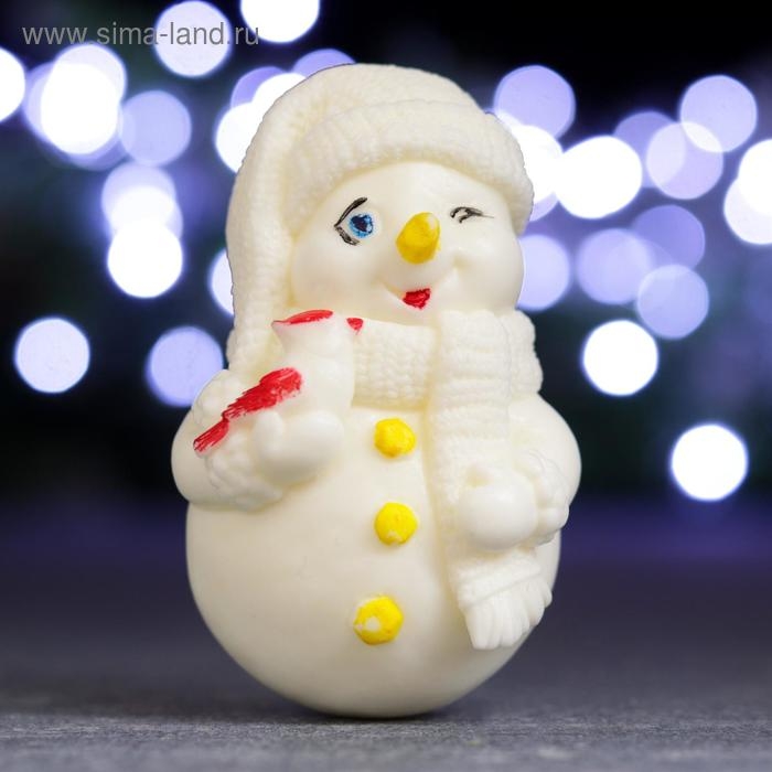 Новогоднее фигурное мыло "Снеговик со снегирём" белый, 110гр, 9х6,5х3,5см