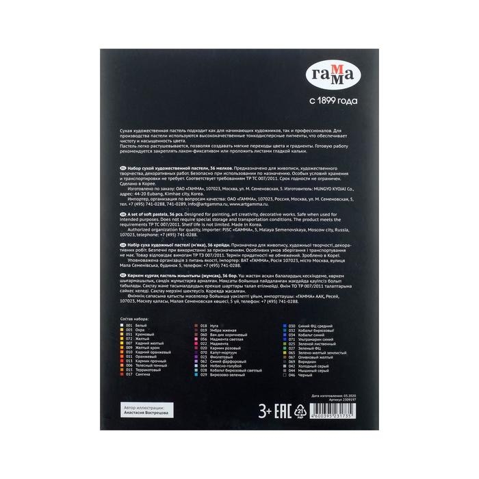 Пастель сухая, набор 36 цветов, Гамма "Старый мастер", базовые цвета /Корея/
