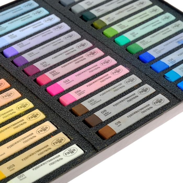 Набор сухой художественной пастели средней мягкости. В наборе мелки квадратной формы в индивидуальной бумажной гильзе с указанием цвета. Пастель легко наносится, смешивается и растушевывается. Цвета в наборе насыщенные, светостойкие.