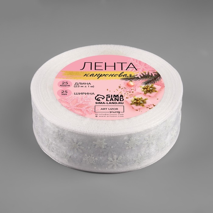 Новый год! Лента капроновая «Снежинки», 25 мм × 23 ± 1 м, цвет серебряный/белый