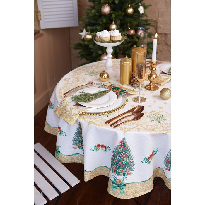 Скатерть новогодняя Этель Golden Christmas d=150 +/- 3см с ГМВО, 100% хлопок, саржа 190 гр/м2