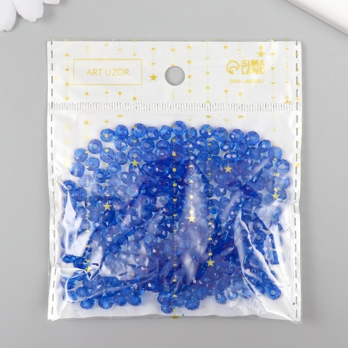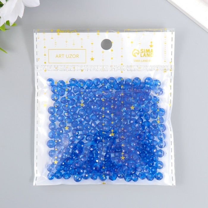 Бусины для творчества пластик "Кристалл с гранями синий" набор 20 гр 0,4х0,6х0,6 см
