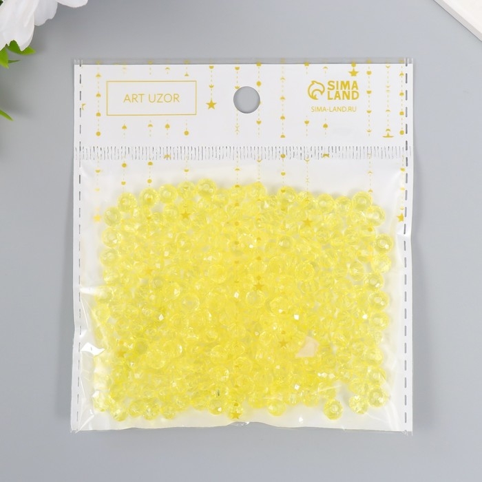 Бусины для творчества пластик "Кристалл с гранями жёлтый" набор 20 гр 0,4х0,6х0,6 см