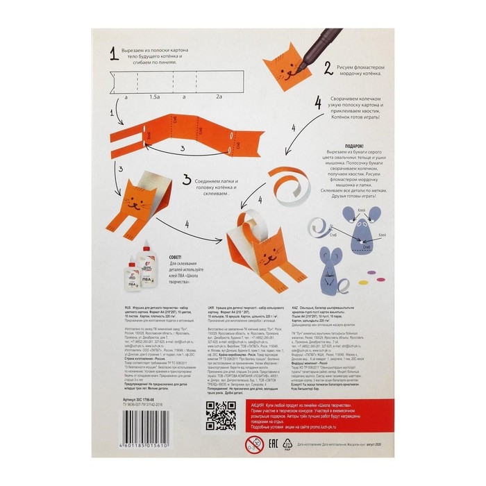 Картон цветной А4, 10 цветов, 20 листов, ErichKrause, мелованный односторонний глянцевый, 170 г/м2, на склейке, схема поделки