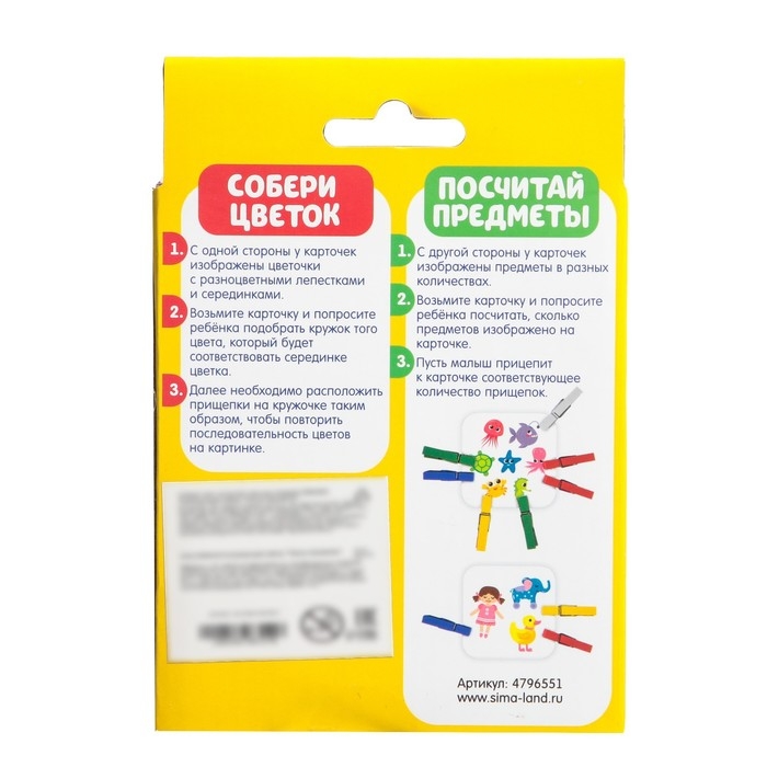 - Пусть малыш прикрепит к карточке соответствующее количество прищепок.