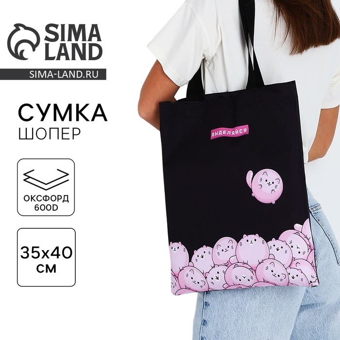 Шопер детский для девочки «Выделяйся», без молнии, без подкладки, цвет чёрный