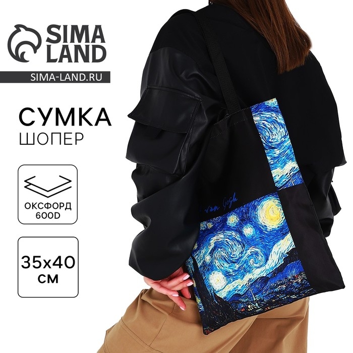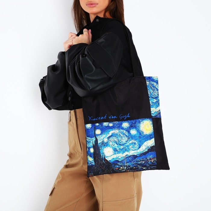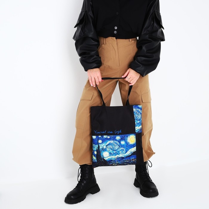 Сумка-шопер «Ван Гог», без молнии, без подкладки, цвет чёрный