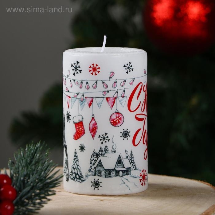 Новый год. Свеча-цилиндр "С Новым годом!", 6х10 см, 30 ч, 227 г, графика