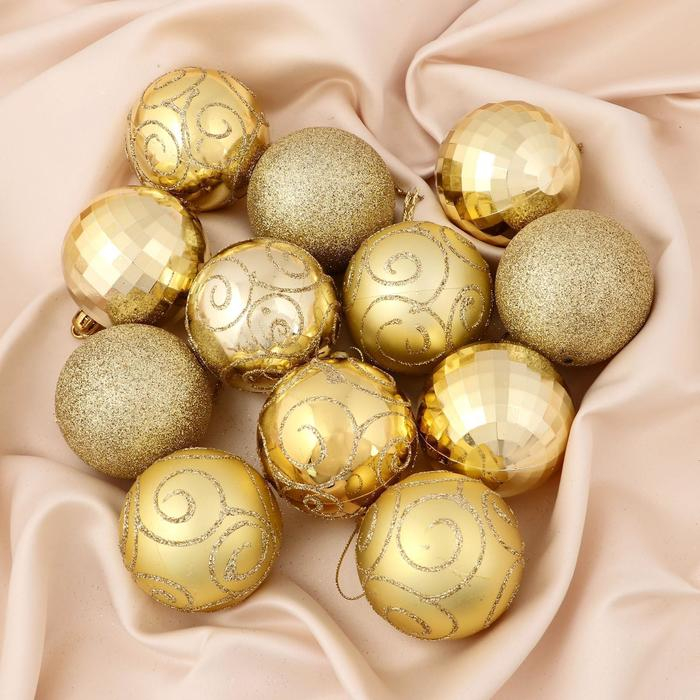Набор шаров пластик d-6 см, 12 шт "Глория" золото