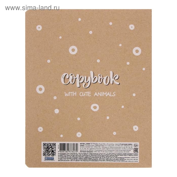 Тетрадь 48 листов, в клетку, "С милыми зверьками", обложка крафт-картон, блок офсет, МИКС