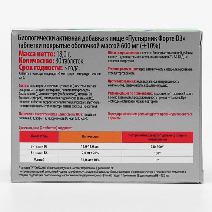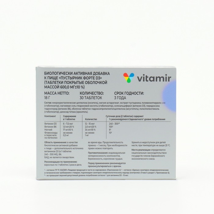 Пустырник форте D3 ВИТАМИР, успокаивающее действие, 30 таблеток