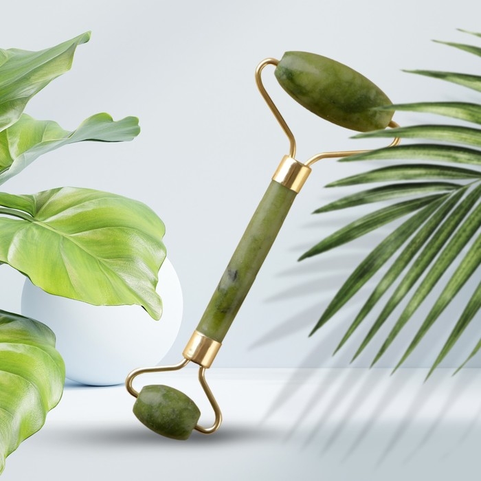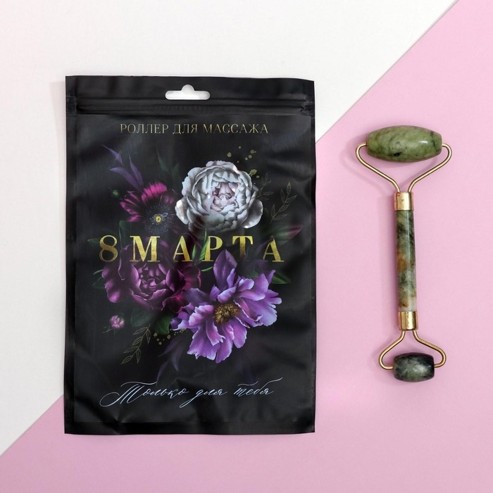 Роликовый массажёр сделан из натуральных камней – кальцита и серпентина. Ролик помогают снять отёчность лица, уменьшить количество морщин, подтягивает кожу, тонизирует её.
