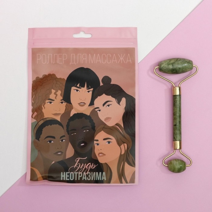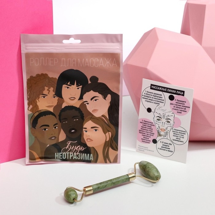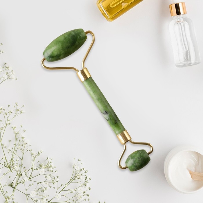 Роликовый массажёр сделан из натуральных камней – кальцита и серпентина. Ролик помогают снять отёчность лица, уменьшить количество морщин, подтягивает кожу, тонизирует её.