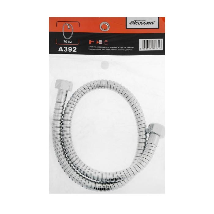 Душевой шланг Accoona A392, 70 см, латунная гайка, цинковый конус, хром