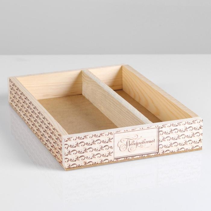 Кашпо деревянное, 27.5×20×4.5 см "Поздравляю", 2 отдела, гравировка