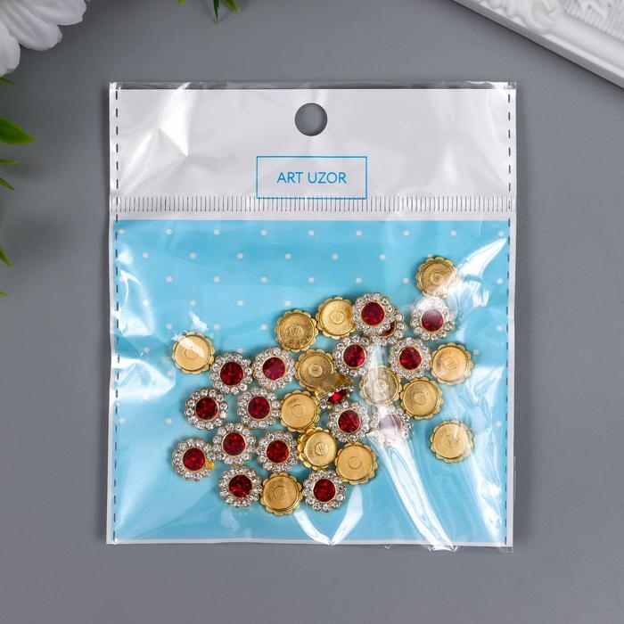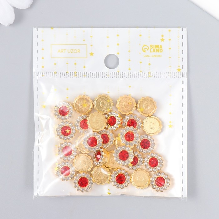 Декор для творчества пластик "Цветок глубокий красный" набор 30 шт 1х1х0,5 см