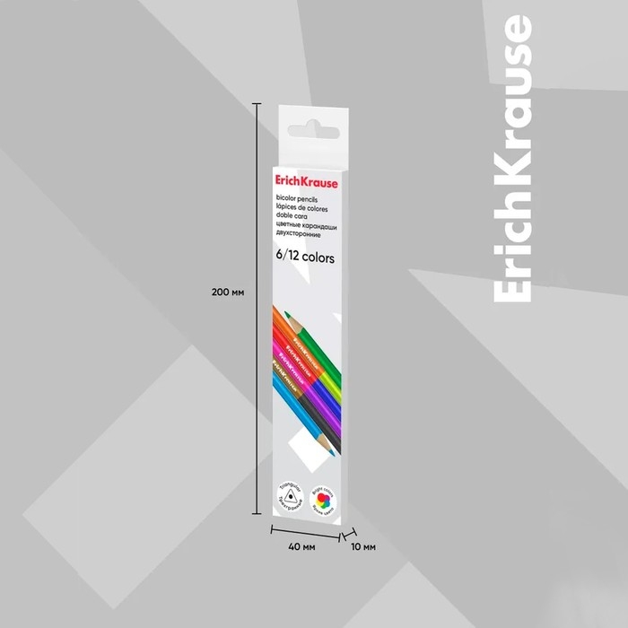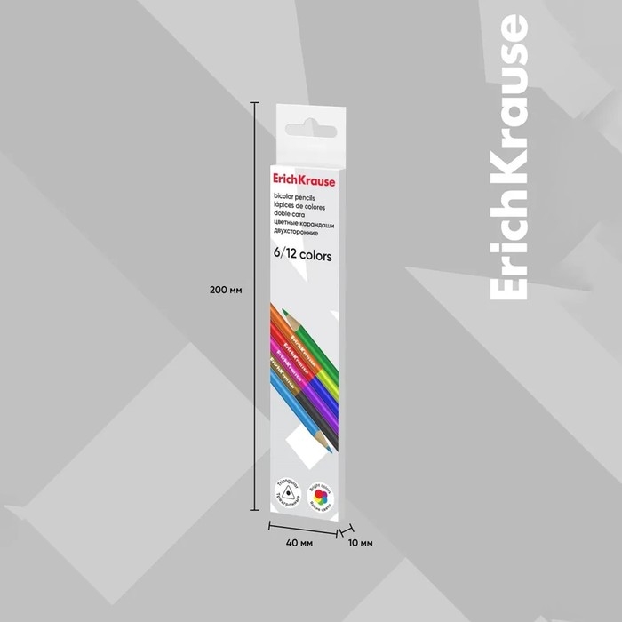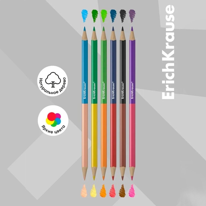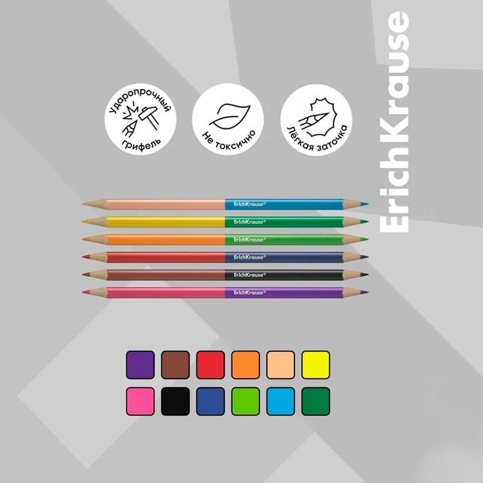 Карандаши 12 цветов 6 штук, ErichKrause, двусторонние, дерево, трехгранные, 2,6 мм грифель, картонная упаковка, европодвес