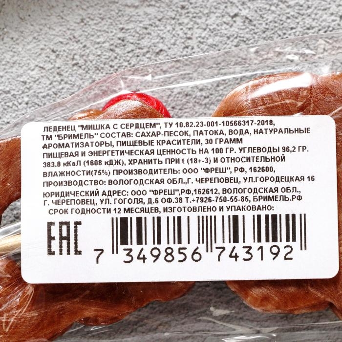 Леденец ручной работы «Мишка с сердцем» 30 г, микс