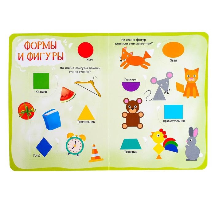 Также с помощью книги малыш выучит геометрические фигуры и цвета.