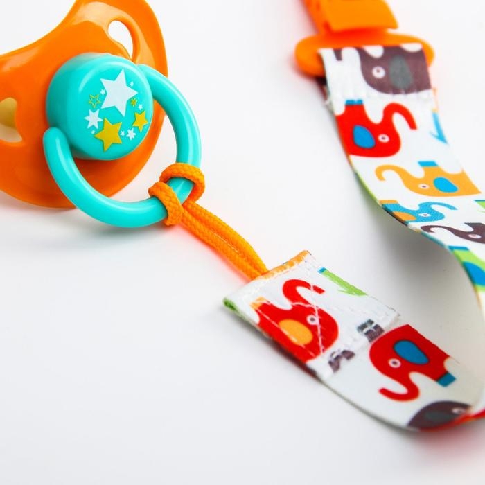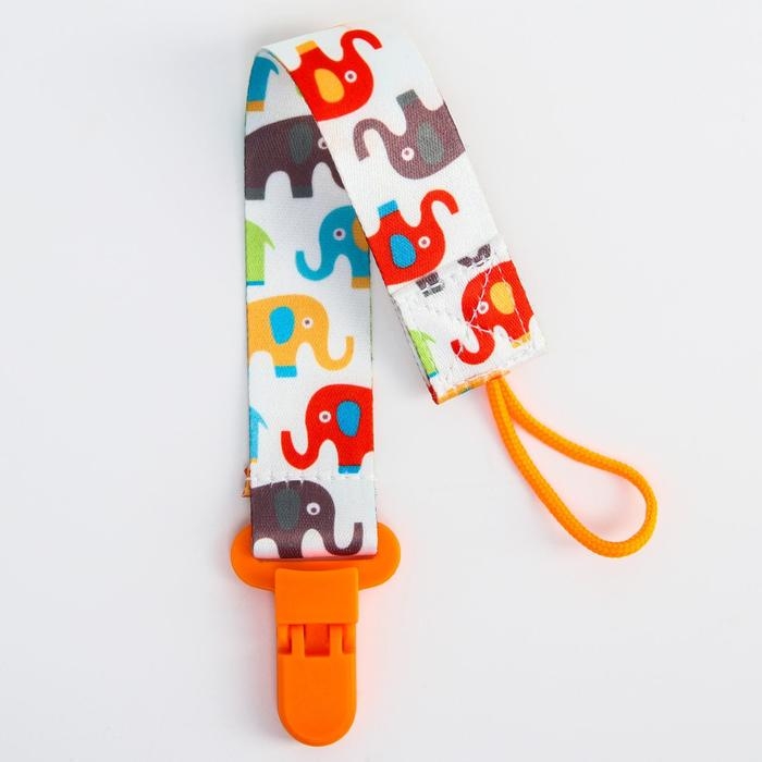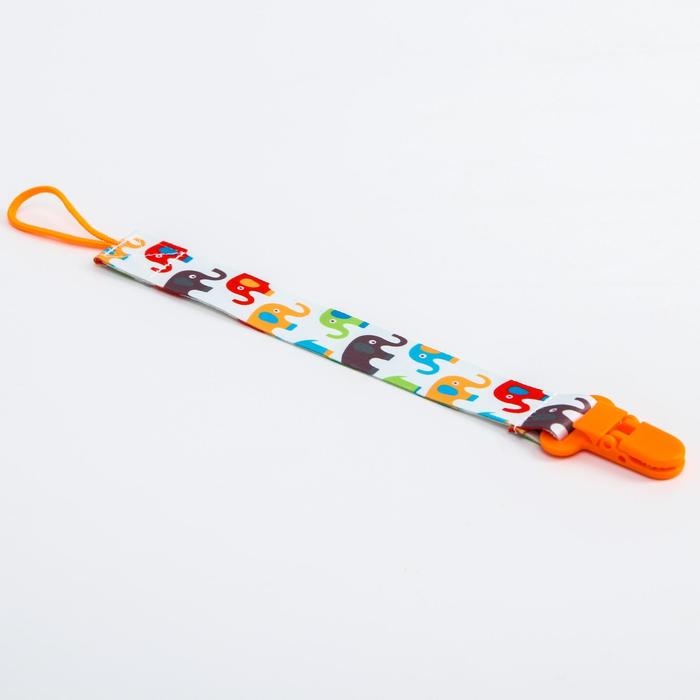 Держатель для соски - пустышки «Слоники», на ленте, 28 см.