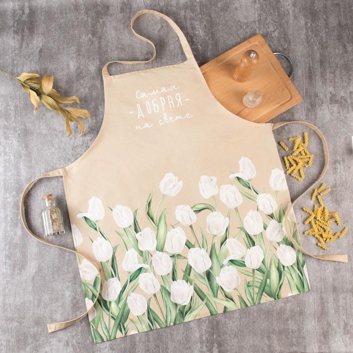 Фартук Этель "Белые тюльпаны" 60х70 см, 100% хл, саржа 190 г/м2