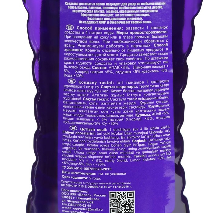 Средство для мытья полов подходит для ухода за любыми полами по всему дому, ламинат, паркет, дерево, керамическая плитка, мрамор, пластик, окрашенные поверхности. Эффективно очищает, не оставляет разводов, не требует смывания водой. Безопасен для домашних животных. Не содержит хлор и обеспечивает свежий запах.