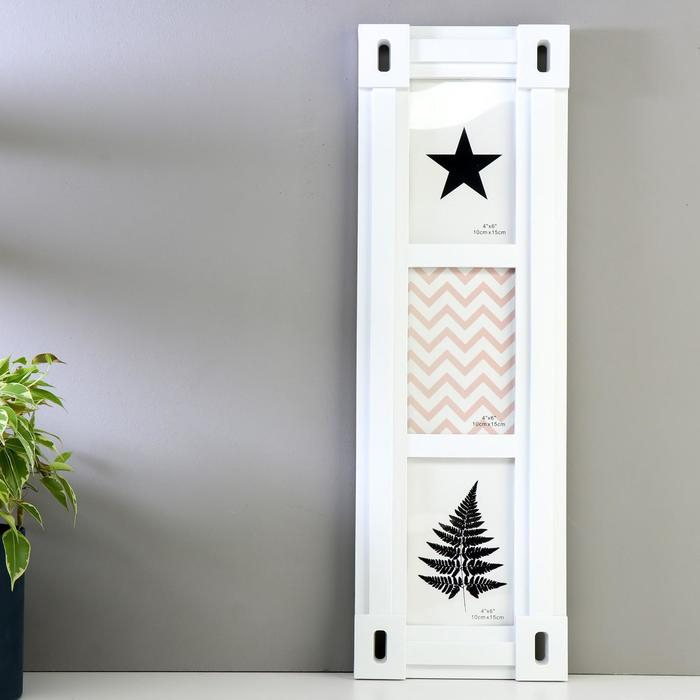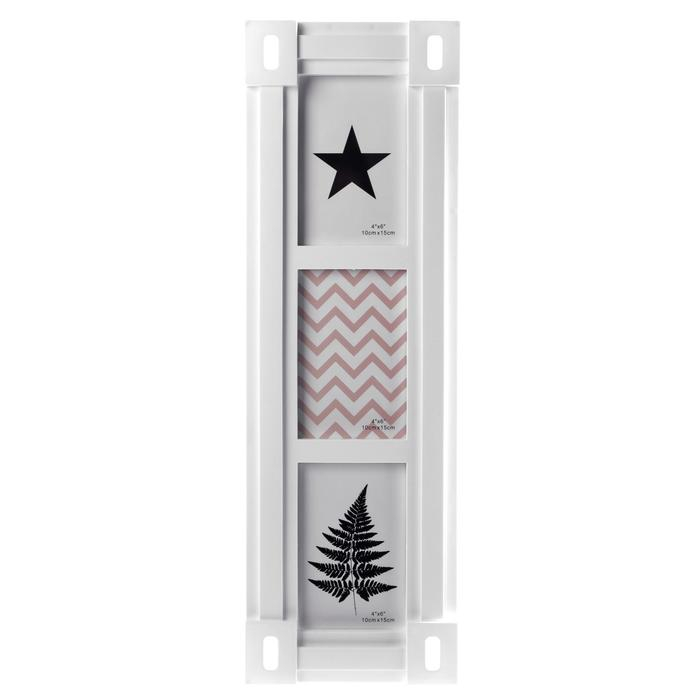 Фоторамка пластик на 3 фото 10х15 см "Прямые линии" белая 53,5х17,5х2,5 см