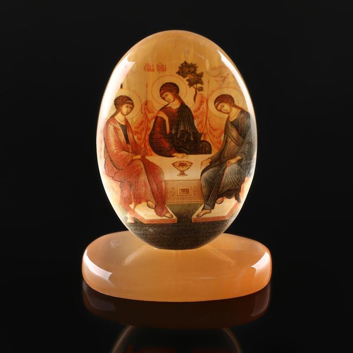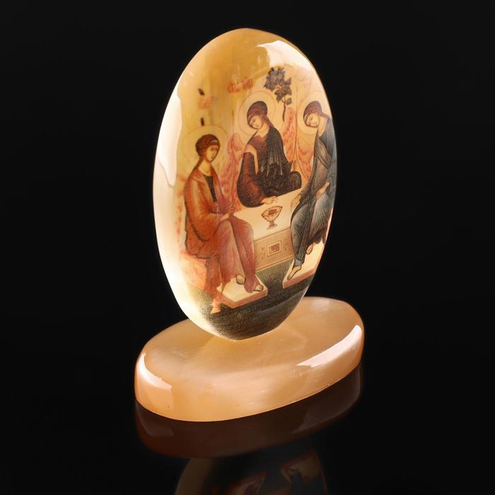 Икона овал на поставке с фоном"Святая троица", селенит
