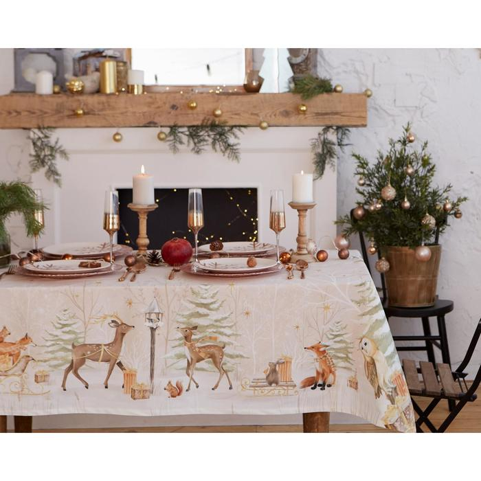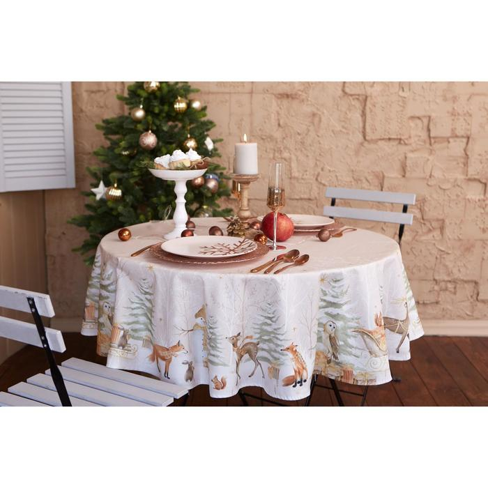 Скатерть новогодняя Этель Christmas forest d=150 +/- 3см с ГМВО, 100%хл, саржа 190 гр/м2