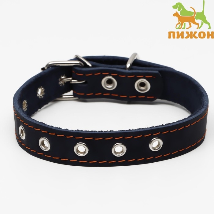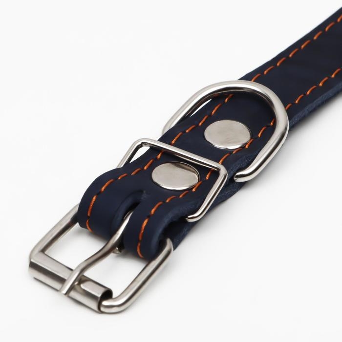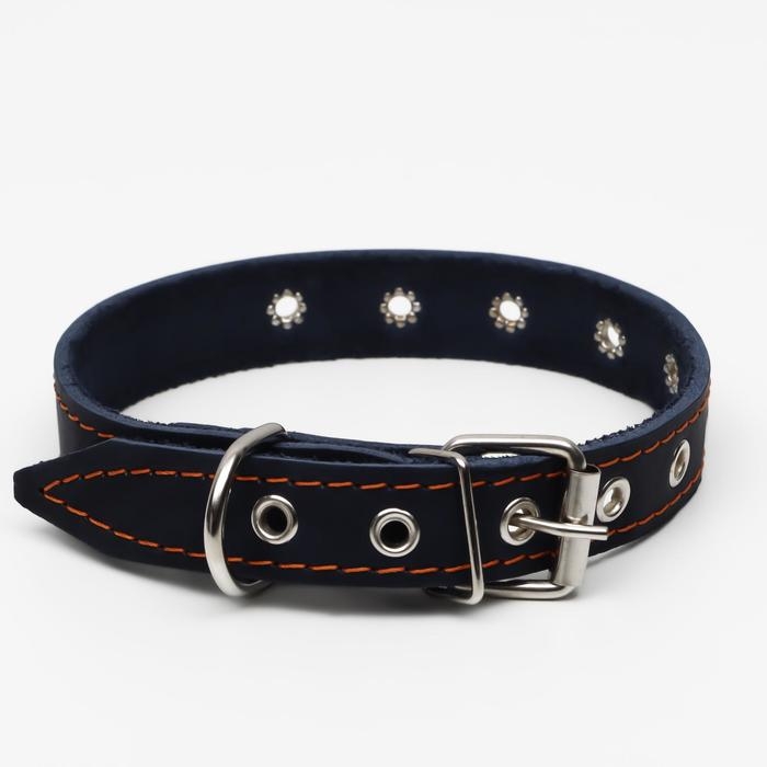 Ошейник кожаный однослойный, безразмерный, 56 х 2.5 см, ОШ 17-44 см, синий