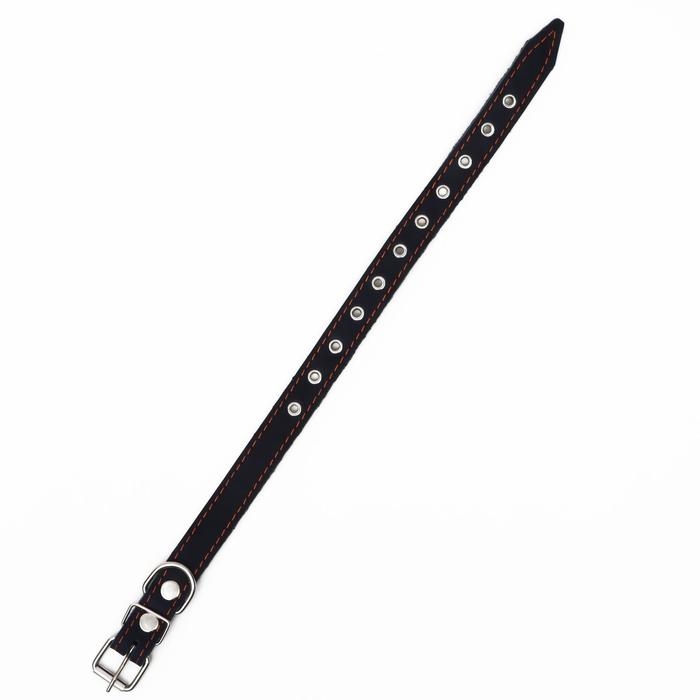 Ошейник кожаный на синтепоне, безразмерный, 54 х 2,5 см, ОШ 19-47 см, чёрный