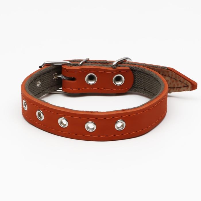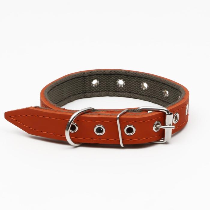 Ошейник кожаный на синтепоне, 56 х 2.5 см, ОШ 35-45 см, коричневый