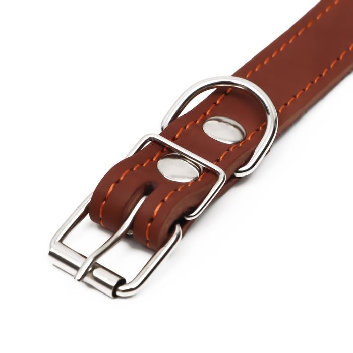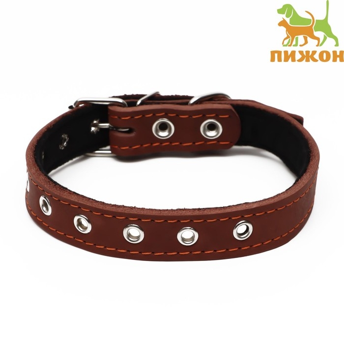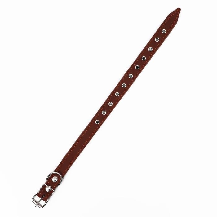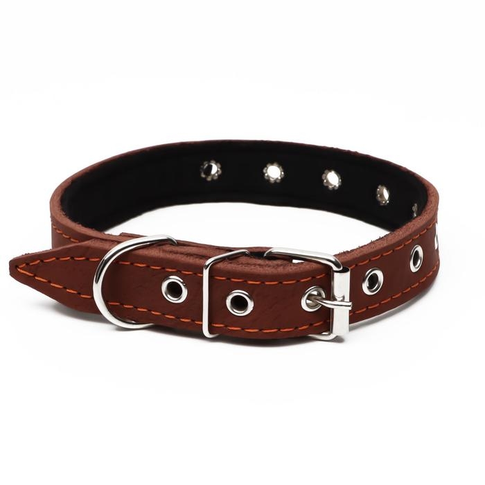 Ошейник кожаный на синтепоне, безразмерный, 54 х 2,5 см, ОШ 19-47 см, коричневый