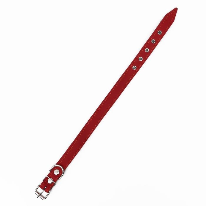 Ошейник кожаный на синтепоне, 56 х 2.5 см, ОШ 35-45 см, красный